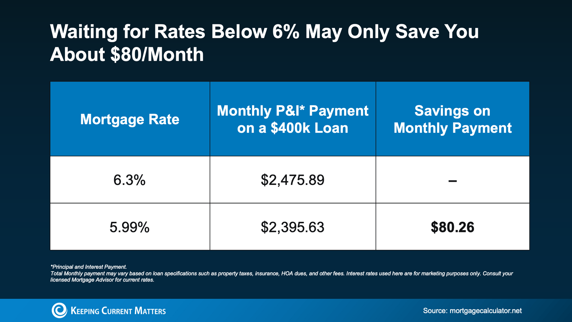 So, if you’re waiting for rates below 6%, just keep in mind… that extra $80 may not be worth it in the grand scheme of things.